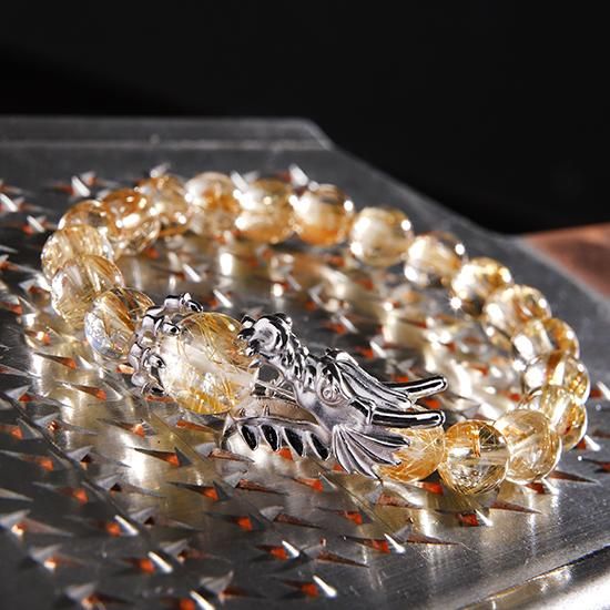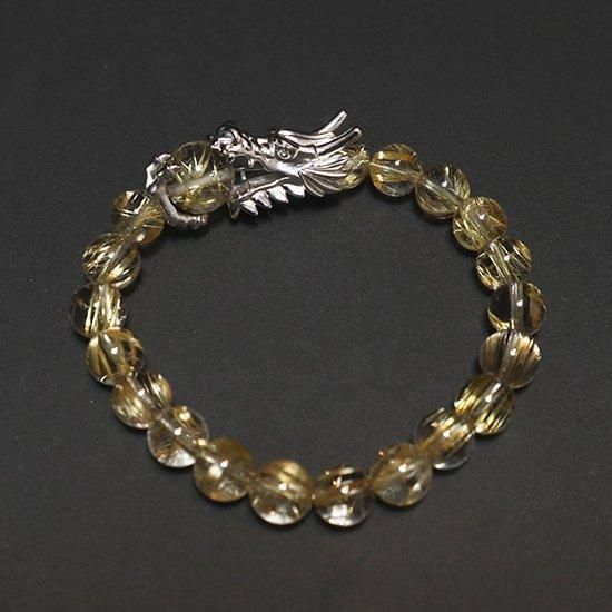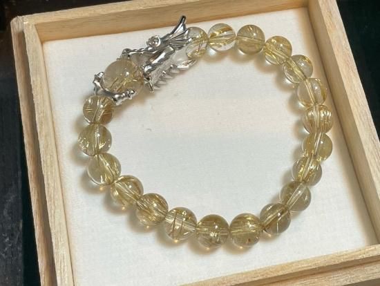 龍神水晶ブレスレット ルチルクォーツ 桐箱入り 内周55mm(粒:大12mm・小8mm)