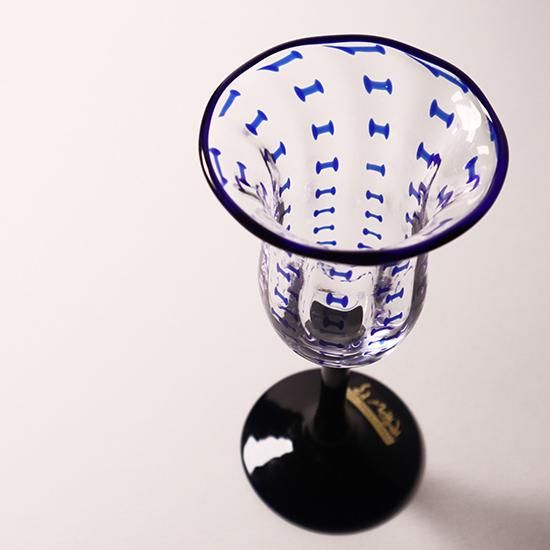 縄文ワイングラス 青 肥前びーどろ(副島硝子工業)直径70mm×高さ150mm ガラス