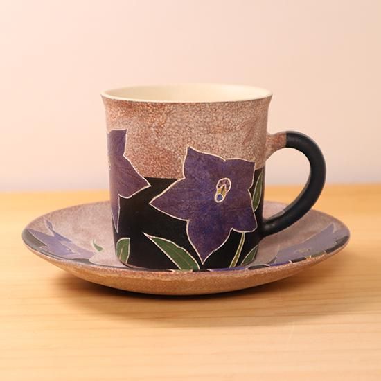 カップ&ソーサー 桔梗 大貫博之 カップ:直径75(取っ手含む95)×高さ70mm ソーサー:直径140×20mm 陶器 和食器 笠間焼