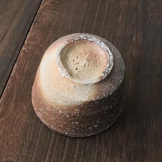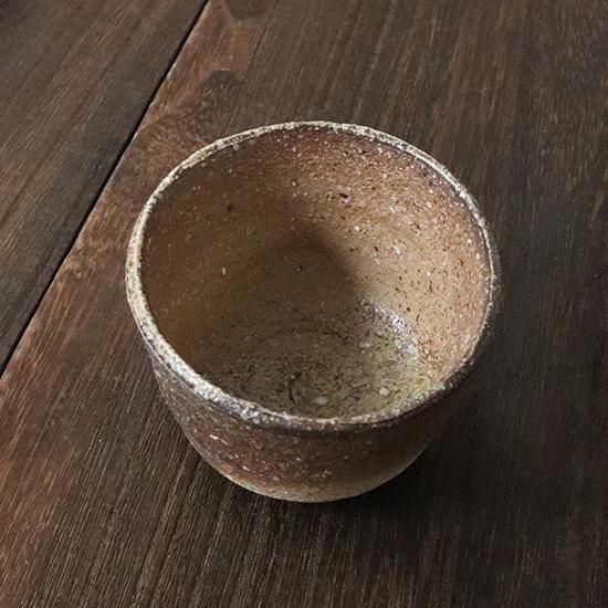 焼き締めのぐい呑みは、無骨な趣ながらもどことなく優しさをまとっています。