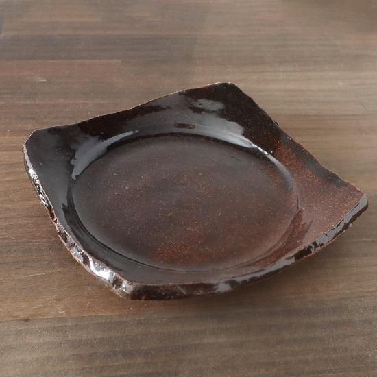 ずっしり重厚感があり、ざんぐりとした輪郭が味わい深い板角皿。