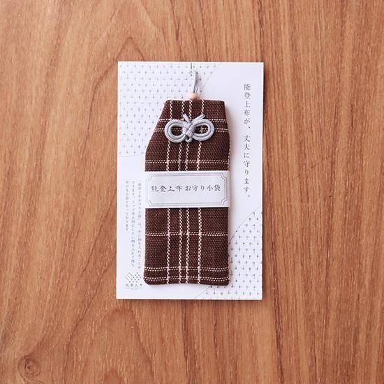 能登上布の丈夫な帯から作られたお守り袋です。モダンな縞柄も楽しめます。