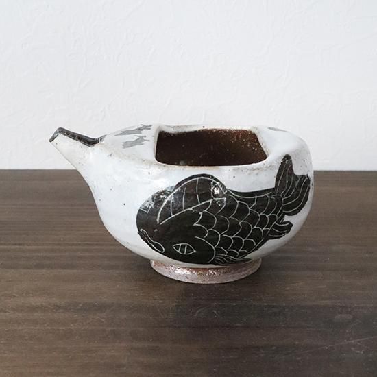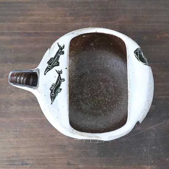 黒絵魚文片口 大 3合 笠間焼 井上憲一郎 長径125×短径120×高さ75mm(注ぎ口を除く)