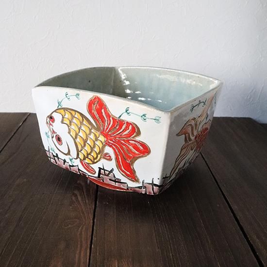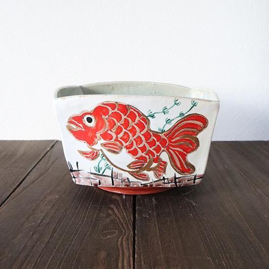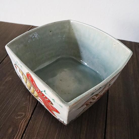 金魚文 角鉢 笠間焼 井上憲一郎 直径200×高さ120mm