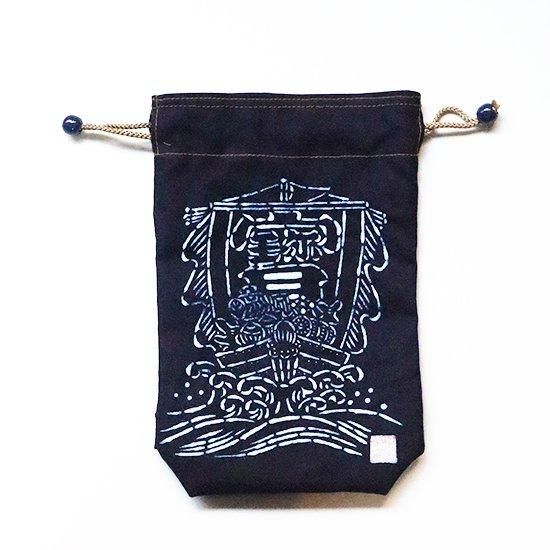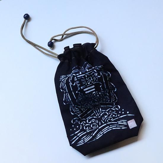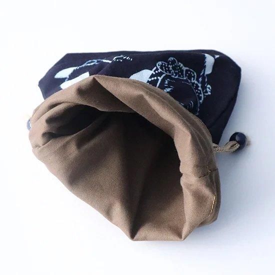 その技法で染めたのが、こちらの藍染め巾着。