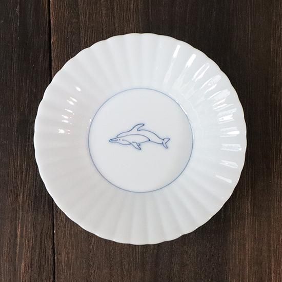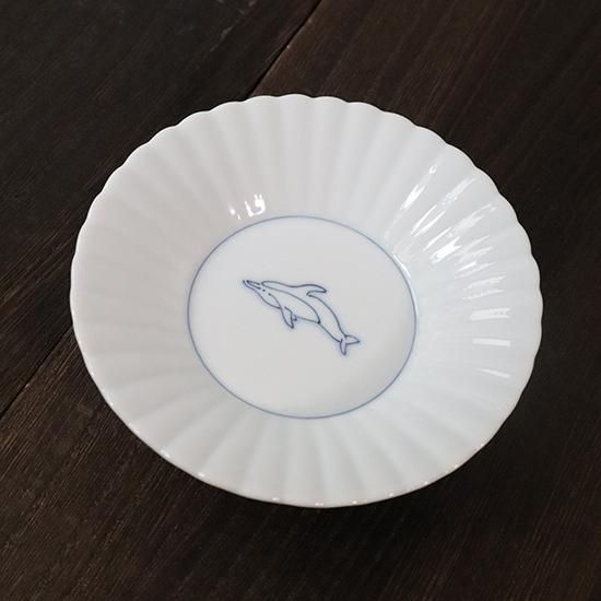 白磁に呉須(ごす)という青い染料で、愛らしいクジラが染付けされた、三川内焼の小皿。