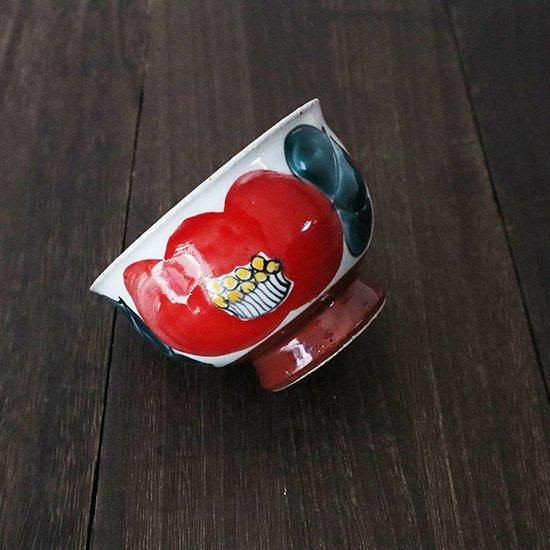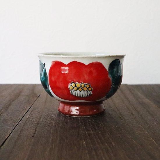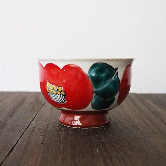 こちらは、赤椿が大胆に描かれた汲み出し茶碗。