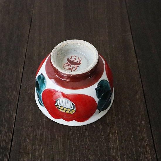 椿文 赤 汲み出し茶碗 笠間焼 井上憲一郎 直径90×高さ60mm