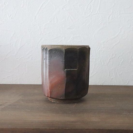 備前焼・松岡誠悟さんによる桟切り面取りの湯呑み。