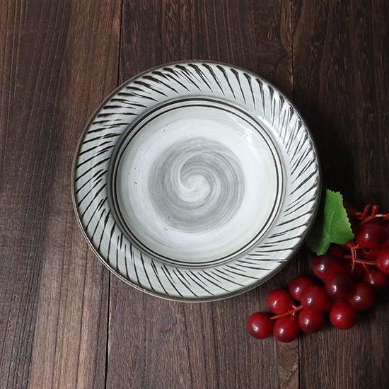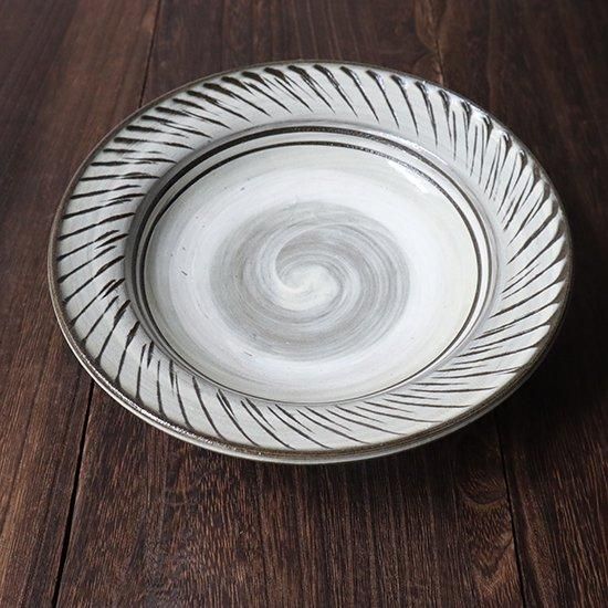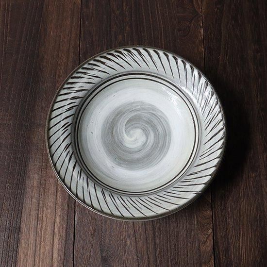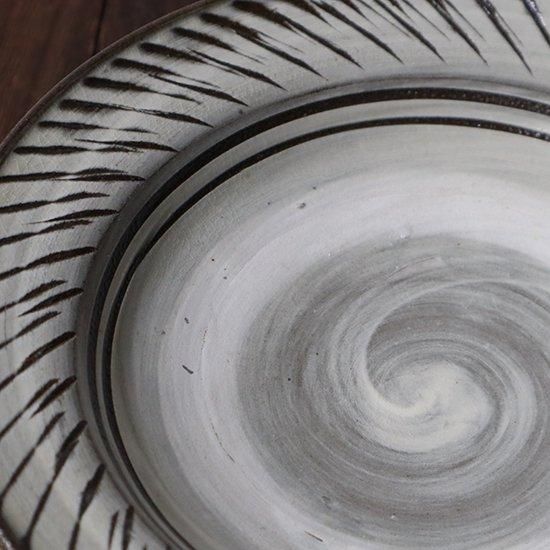 六寸皿 リム 白 飛鉋 坂本工窯 小鹿田焼 φ185×高さ45mm