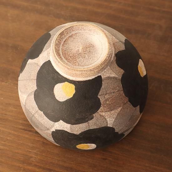 抹茶碗 椿 モノトーン 大貫博之 直径10.5×7.5cm 陶器 和食器 笠間焼