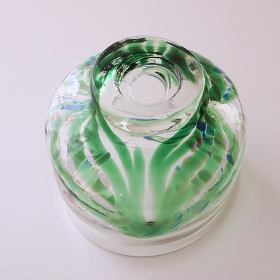 抹茶茶碗 彩色 グリーン 草野啓利 直径11.5×高さ9.5cm ガラス