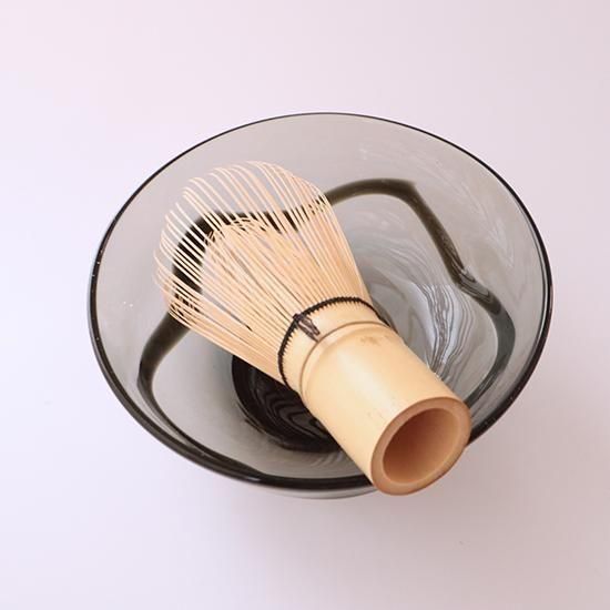 抹茶の濃緑が映える、黒いガラスの抹茶碗。