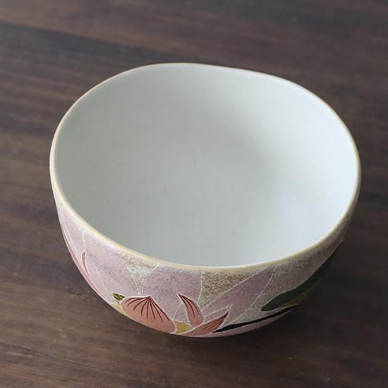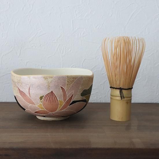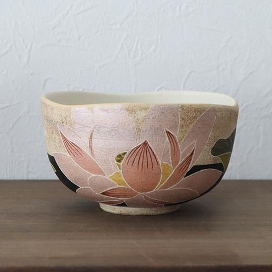 こちらは、蓮が大胆に描かれた華やかな抹茶碗。