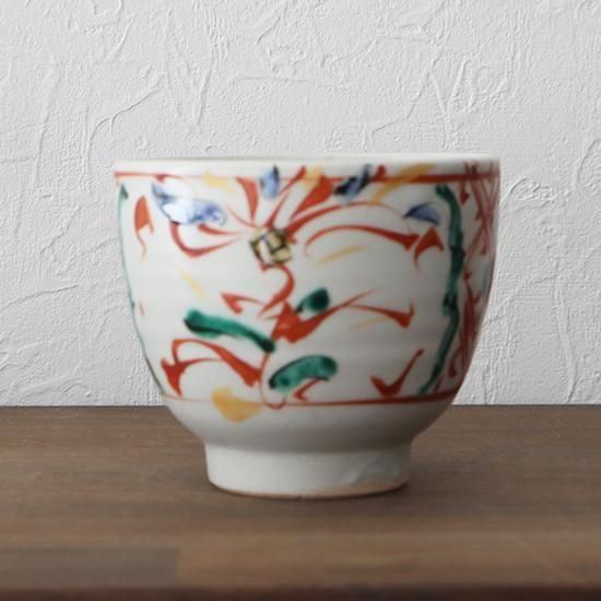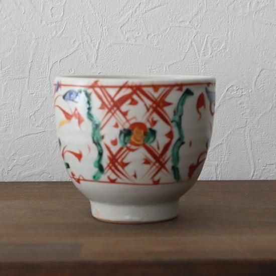 色絵 湯呑み 赤 中郷窯 鈴木工友 信楽焼 口径約85×高さ約70mm