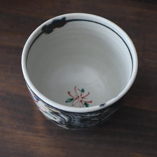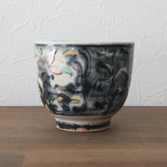 色絵 湯呑み 黒 中郷窯 鈴木工友 信楽焼 口径約85×高さ約70mm
