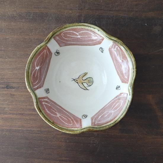小鉢 鳥 ピンク 絵付け 加藤淳 美濃焼 (約)直径10.5×高さ4cm